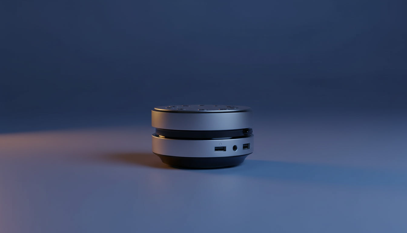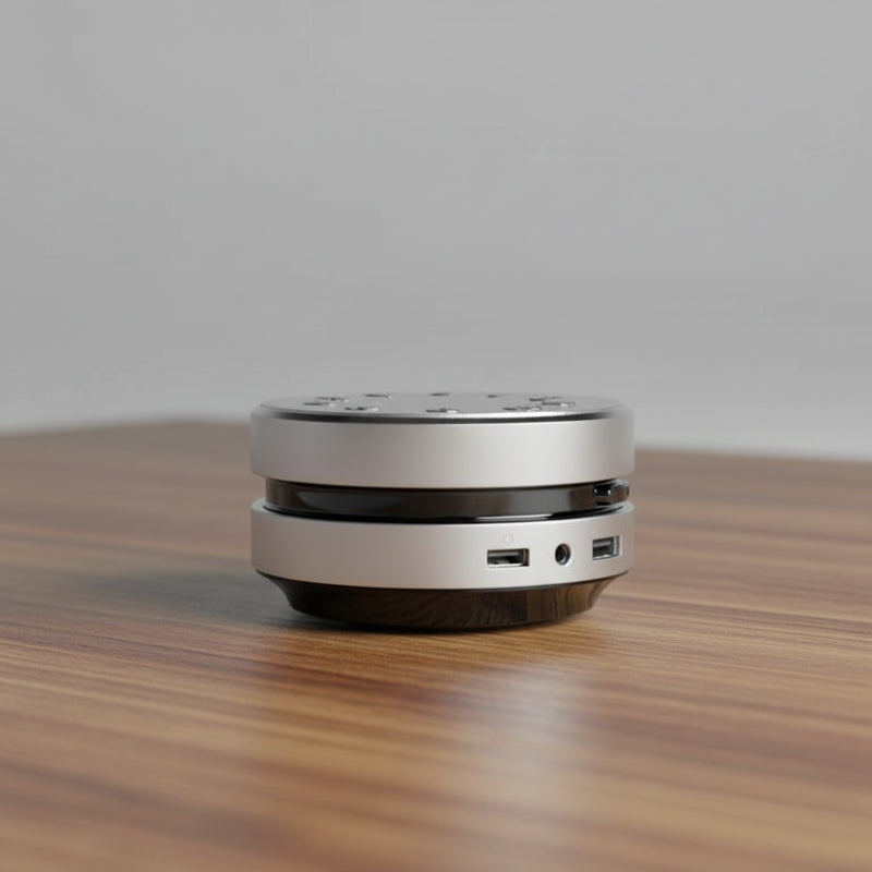 A compact magnetic speaker that sticks to any surface and fills your space with powerful sound.