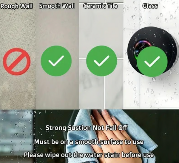 Experience powerful, room-filling sound anywhere — even in the shower. Our ultra-durable waterproof speaker sticks firmly to tiles, glass, mirrors, and any smooth surface, giving you music exactly where you want it. Designed for convenience, built for everyday use.